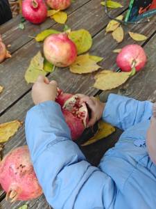 In occasione dell'arrivo dell'autunno, con i suoi colori, i suoi sapori e le sue sfumature, le educatrici del nido Gambero hanno organizzato un momento di incontro nel giardino del plesso nel pomeriggio del 2 di ottobre. In tale occasione è stato possibile bere assieme un thè caldo offerto dal nido ed è stata proposta merenda coi bambini nel giardino della scuola. Tale momento di condivisione, è stato realizzato anche per cogliere l'occasione di celebrare la festa dei nonni che sono stati invitati, assieme alle famiglie a partecipare. Durante il pomeriggio una nonna e un'educatrice si sono offerti volontari per la lettura di due libri ed è stato allestito un contesto dove i bambini e le bambine potevano avvicinarsi liberamente a materiali tipicamente autunnali come il melograno, sperimentandosi attraverso i sensi. E' stata una bella occasione per reincontrarsi e trascorrere del tempo di qualità in natura, insieme: è così che il nido diventa un luogo fondamentale dove si costituiscono i primi spazi di vita comunitaria e in cui i bambini sperimentano relazioni significative al di fuori del contesto famigliare, ma anche con le famiglie.